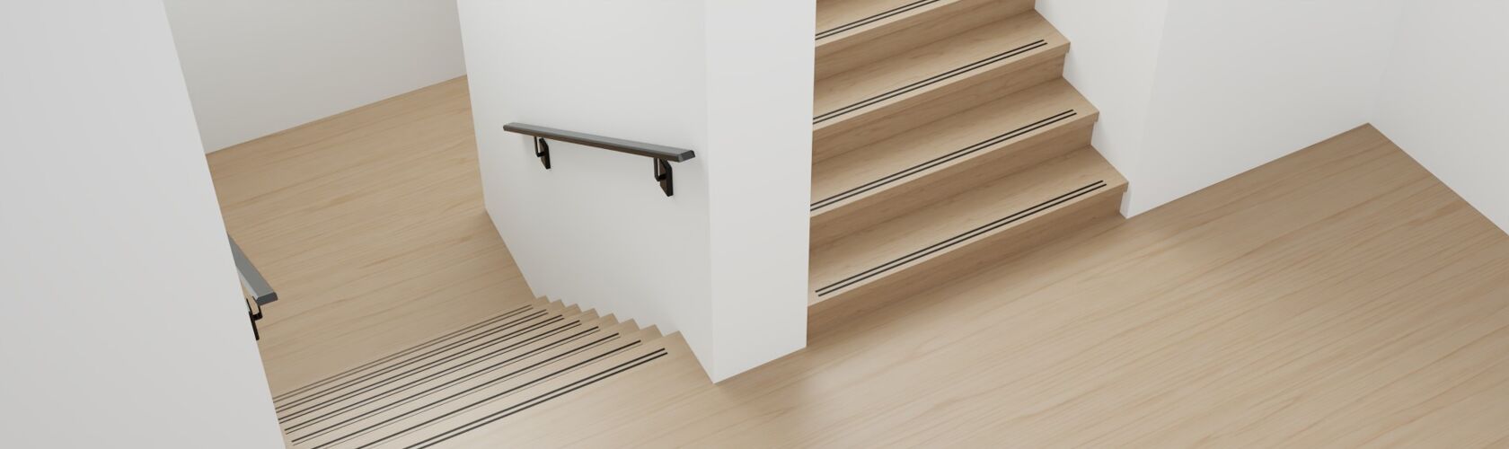 Infreesrubbers zijn antislipprofielen die in ingefreesde sleuven worden geplaatst, aan de voorzijde van de traptrede. Met twee profielen parallel aan elkaar met enkele centimeters ruimte ertussen, is het effect helemaal optimaal, terwijl het ook esthetisch fraai is.